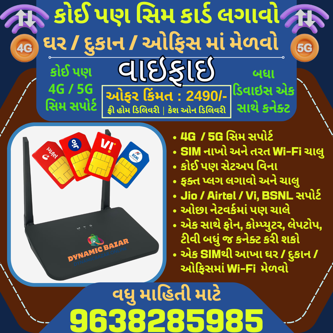 જો તમે વિશ્વસનીય, સરળ ઉપયોગી અને પોર્ટેબલ WiFi સોલ્યુશન શોધી રહ્યા છો અને માસિક બ્રોડબેન્ડના ઝંઝટથી બચવા માંગો છો, તો આ રાઉટર તમારા માટે પરફેક્ટ છે. ફક્ત એક SIM કાર્ડથી તમારું આખું ઘર, દુકાન અથવા ઓફિસ ઇન્ટરનેટ સાથે કનેક્ટ થઈ શકે છે.
